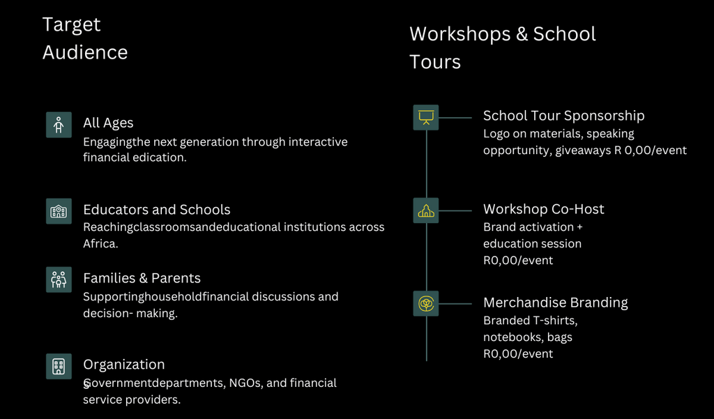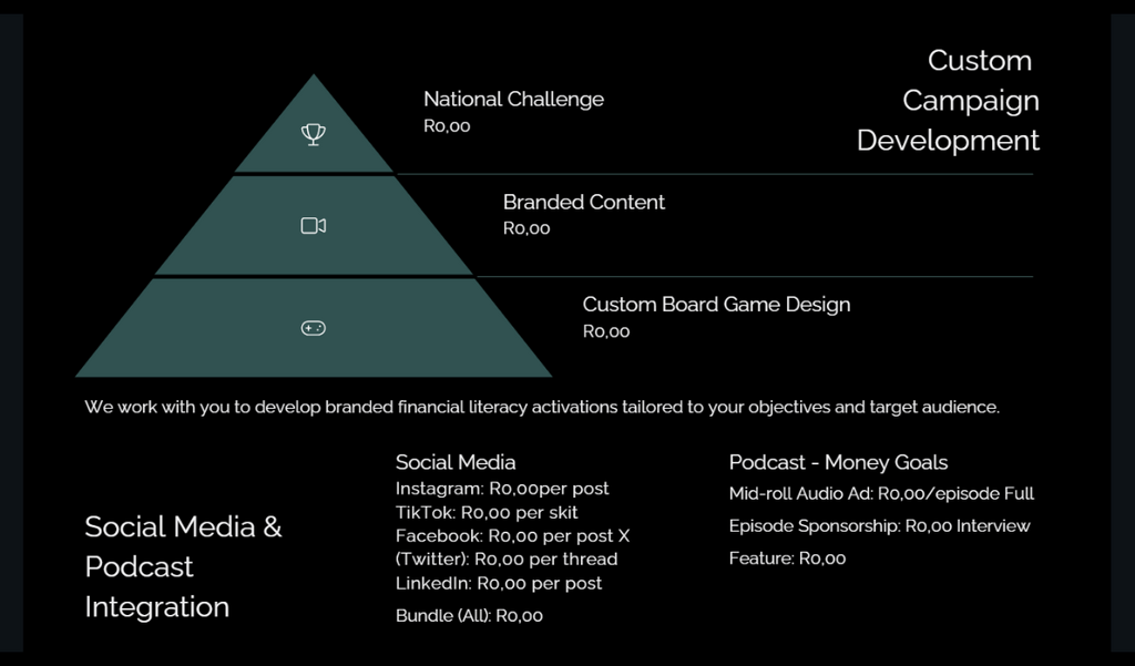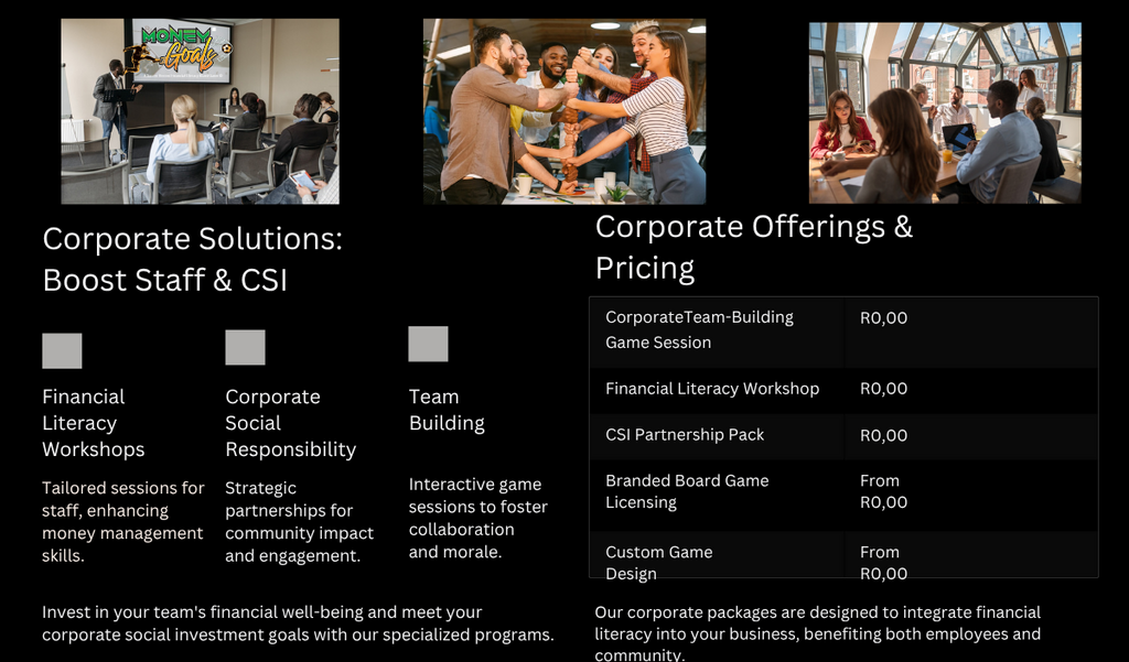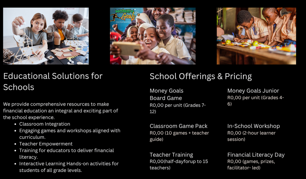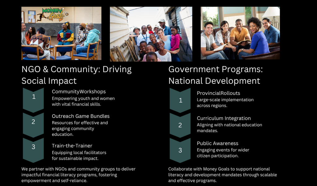 Money Goals is a financial literacy movement using board games, media, and public engagement to promote practical money education across Africa and developing countries.